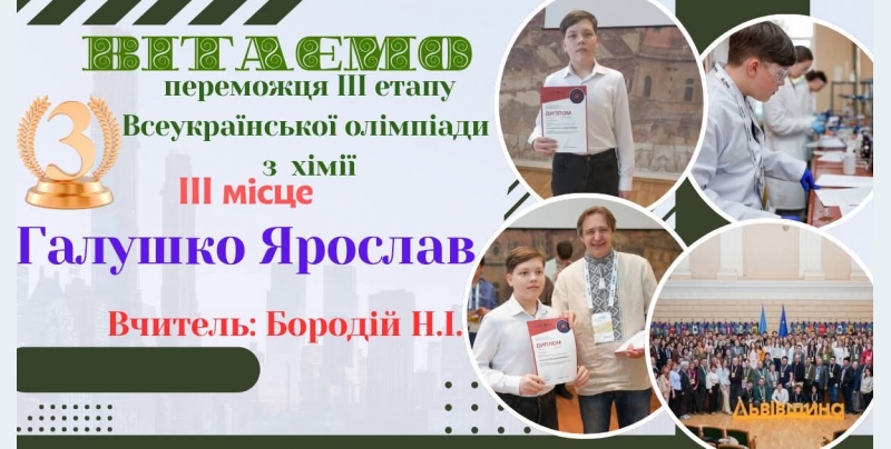 Цьогоріч Львів гостинно зустрічав найкращих юних хіміків з усієї країни.Учасники продемонстрували свої знання та навички у різних форматах. Пишаємося учнем 9-Г класу Ярославом Галушко , який здобув ІІІ місце на Всеукраїнській хімічній олімпіаді!