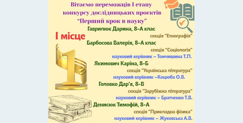Вітаємо переможців І етапу конкурсу дослідницьких проєктів "Перший крок в науку"